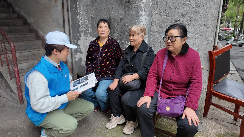 ▲南華大學基礎醫學院“三十六馬赫”志愿宣講團到轄區居民樓宣傳